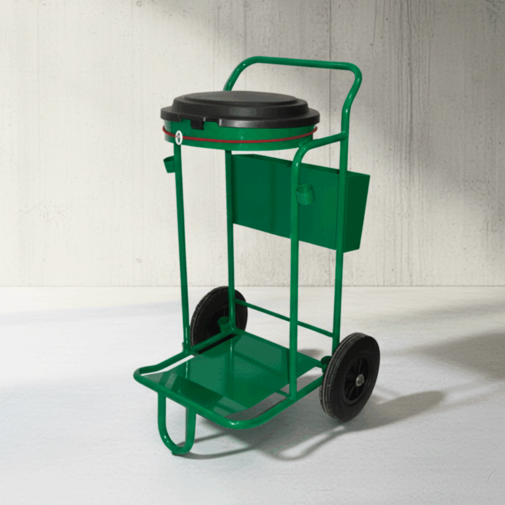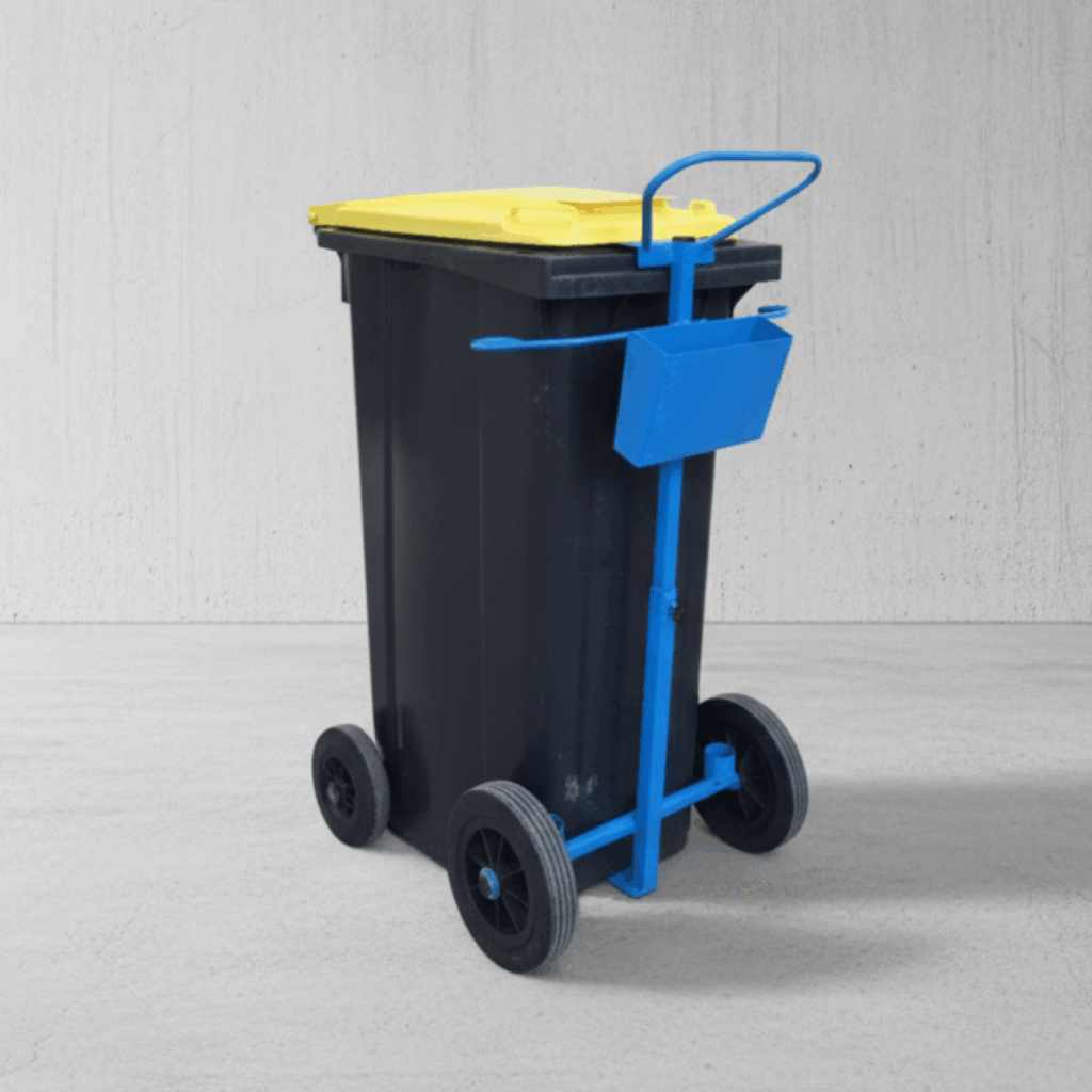 Compact et ergonomique, il permet de maintenir et transporter facilement des poubelles à poignées de 50 à 80 litres, tout en garantissant confort et stabilité à l’utilisateur.