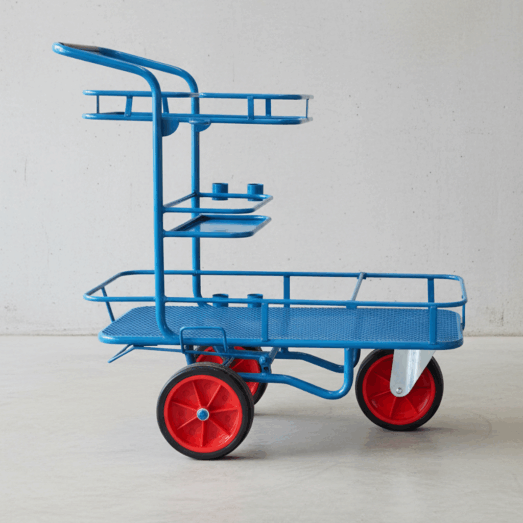 Sa structure en acier thermolaqué et ses roues pleines garantissent une durabilité optimale, même sur les sols irréguliers.