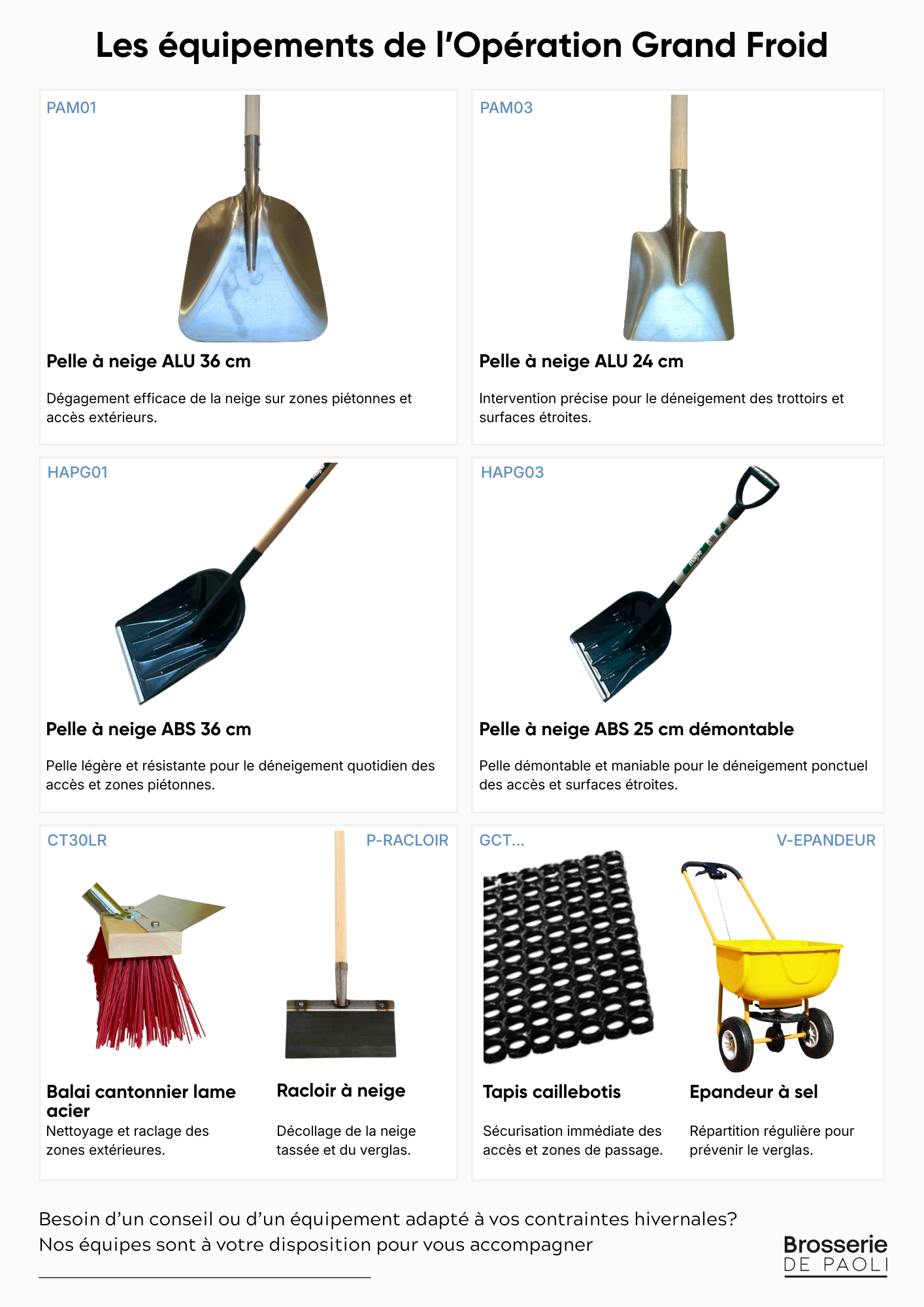 Dans le cadre de notre Opération Grand Froid, nous mettons en avant une sélection de matériels et consommables conçus pour faire face :